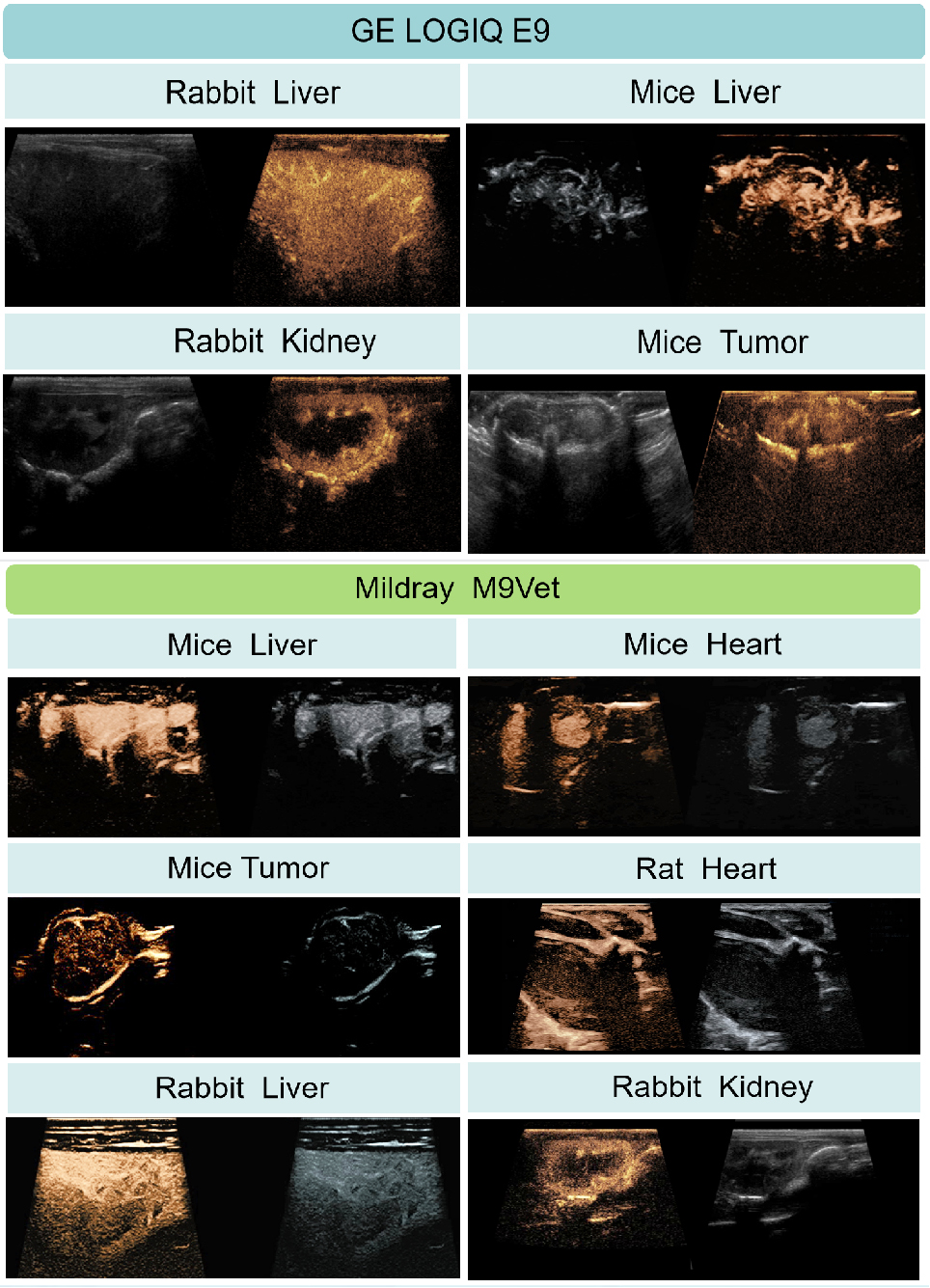 US-Star系列超声微泡造影剂具有优良的影像对比效果,可用于多种小动物体内成像。